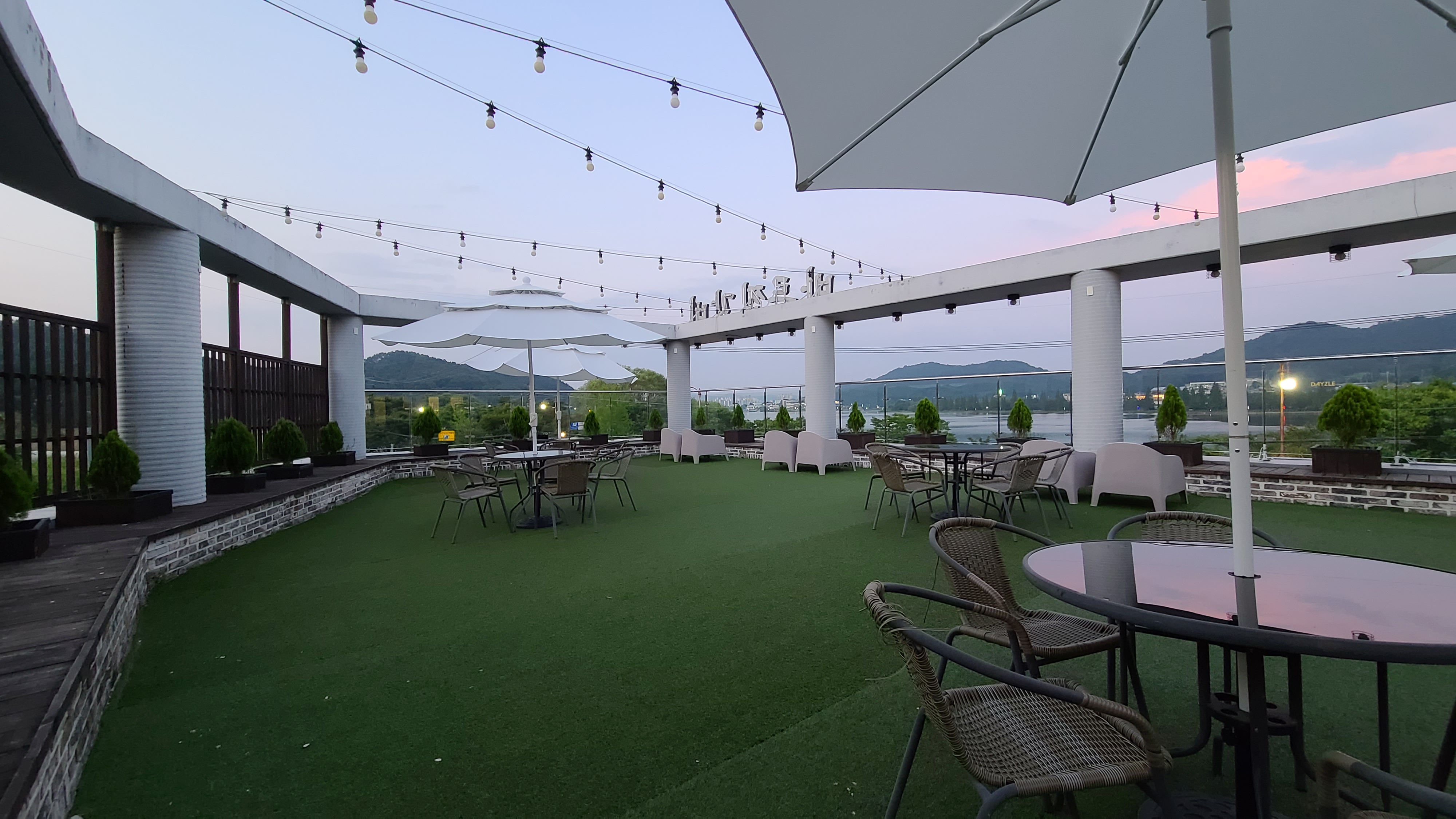 대부분 옥상은 단조롭기 그지없다. 그러나 이 건축물은 옥상에 코일매트를 깔고 해가림 테이블과 의자를 설치하여 저수지를 조망할 수 있도록 만드니 별 볼일 없는 공간을 쓸모있게 만들었다.