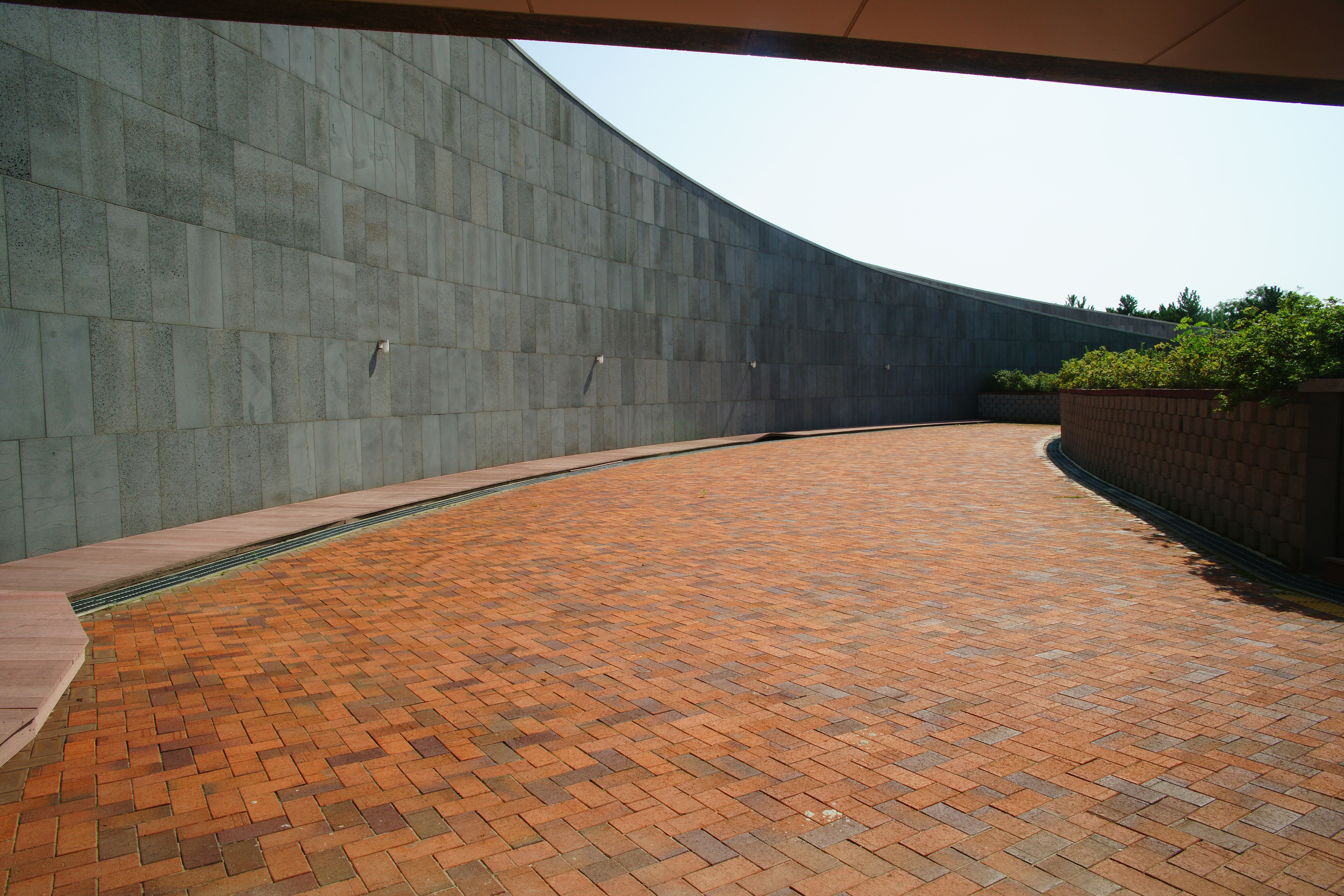 충남 태안 신두리 해안사구의 방문자 센터의 출입구에서 뒤 돌아본 옹벽.